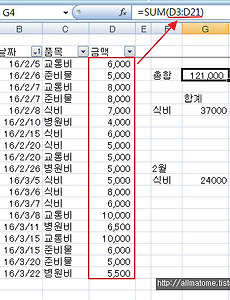 엑셀 함수 SUM, SUMIF, SUMIFS - 엑셀 합계, 조건에 맞는 합계 구하기